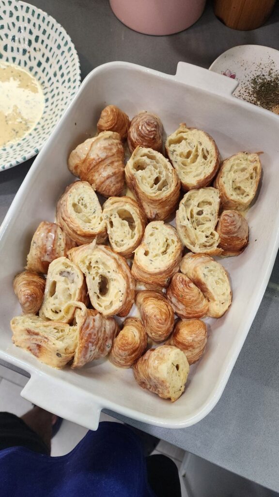 The key to getting this just right is using slightly stale croissants. Fresh ones can be too soft and may turn soggy, while day-old croissants hold their structure and absorb the custard perfectly.
