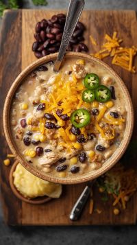 Seasoning the chicken first is key. Browning it adds color and depth, and then letting it finish cooking in the broth keeps it juicy and flavorful. The cream cheese and heavy cream melt into the broth to create that signature white chili richness, while the beans and corn add texture and heartiness.